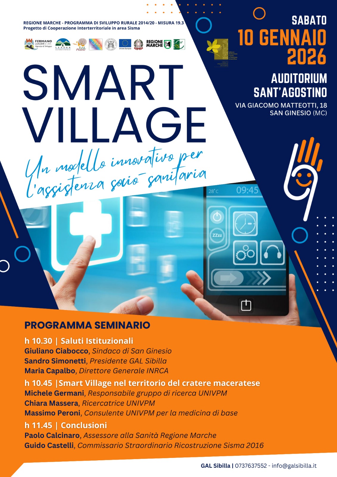 Psl Sibilla - Misura 19.3 - Progetto di Cooperazione interterritoriale in area sisma “SMART VILLAGE. Un modello innovativo di assistenza socio sanitaria” -Seminario finale dei risultati 10 Gennaio 2026