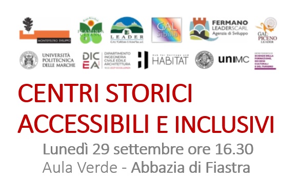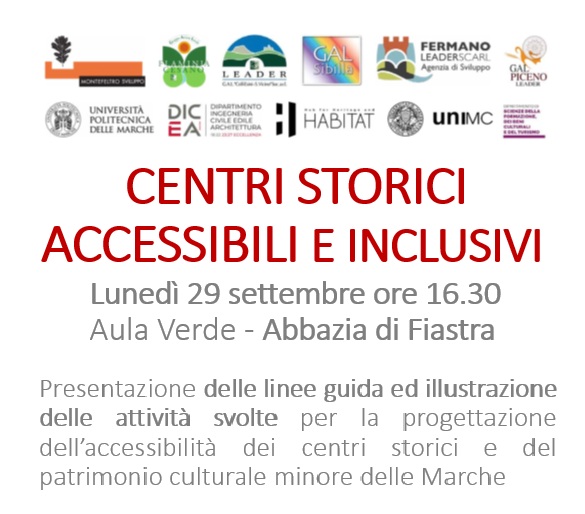 Prot. GAL Sibilla n. 704 del 25.09.2025 Progetto di Cooperazione Interterritoriale CENTRI STORICI ACCESSIBILI E INCLUSIVI Evento conclusivo Ancona, Aula Magna – Università Politecnica delle Marche, Vi...